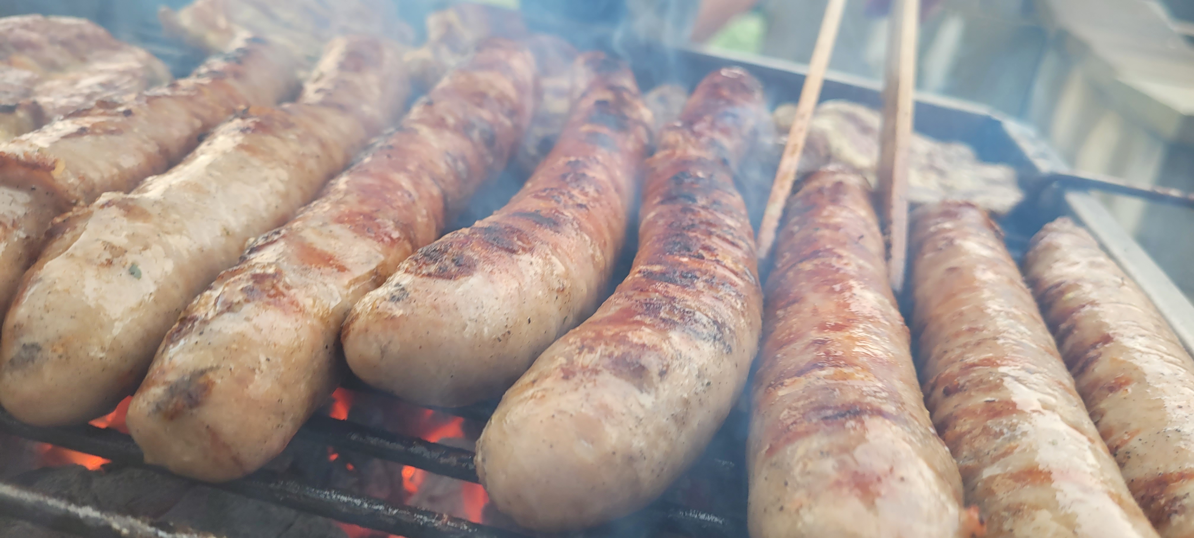 5 fränkische Biere à 0,2l, 5 typisch fränkische Speisen (in angepasster Größe) vom gezupften Schäuferla über blaue Zipfel bis zu Gerupften und gebratene Göttinger und 5 ausgesuchte Brände und Geiste aus fränkischen Brennereien.